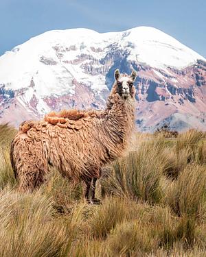 We were driving through southwestern Ecuador on an unusually clear day and marveling at how clear the Chimborazo volcano (highest mountain in Ecuador) was. We stop to appreciate the site properly and to the right of the road was a group of llamas. After carefully skirting them, I was able to grab this shot of the Guardian of Chimborazo.